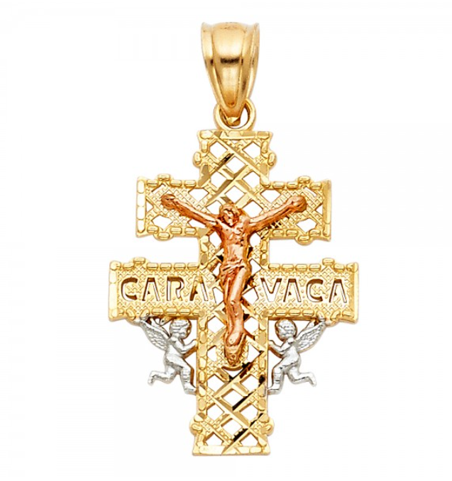 14K 3C Jesus Crucifix Cross with Angel Religious Pendant